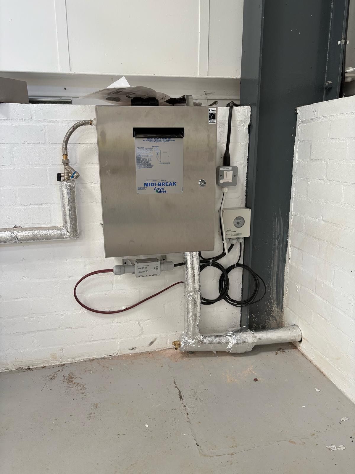 As part of the project, we installed a dedicated water feed to service the newly constructed car park and external ambulance wash station. The system was equipped with trace heating to safeguard against freezing conditions and integrated with a CAT 5 compliant breaker pump to ensure backflow prevention and maintain water hygiene standards.
