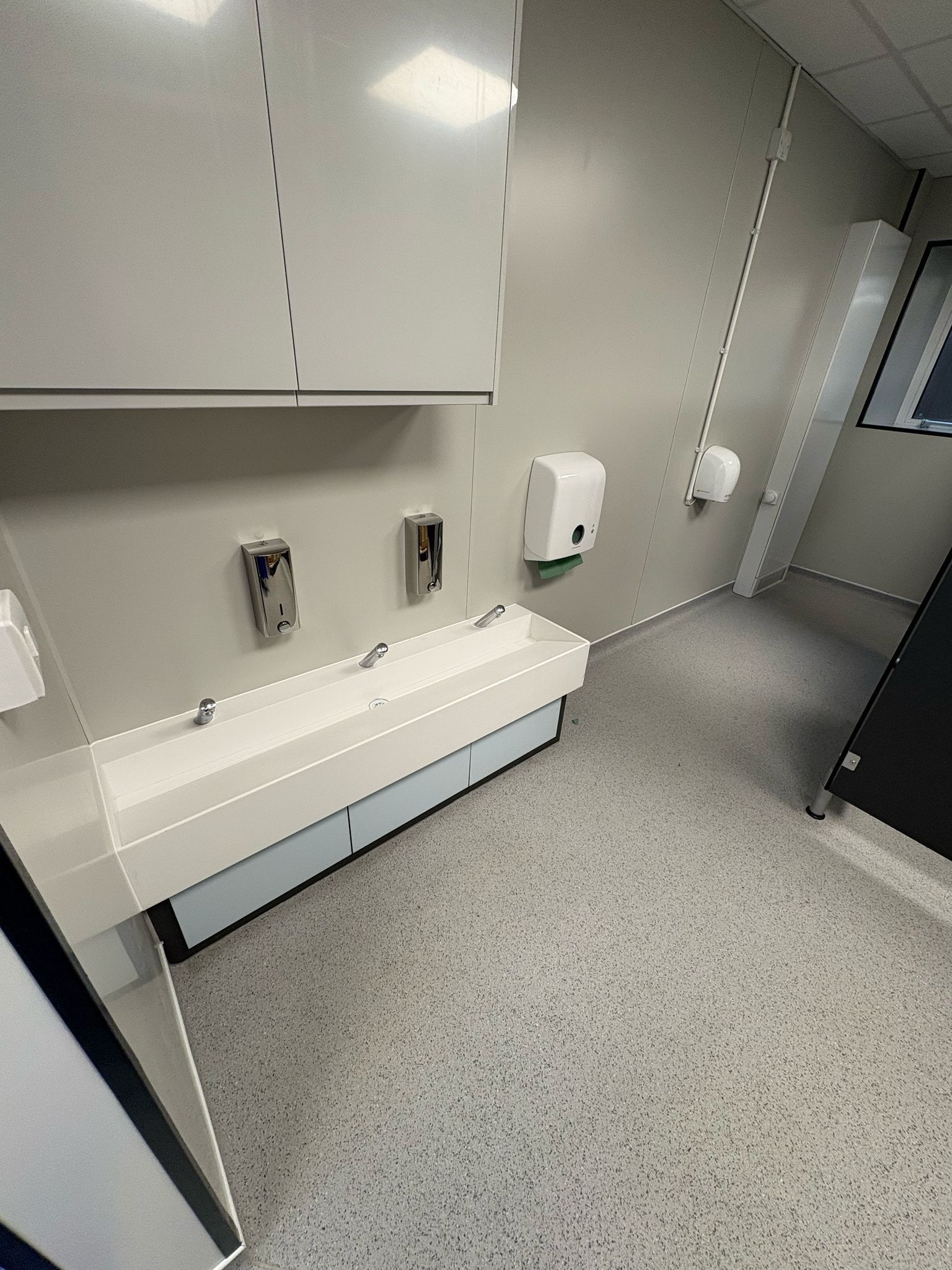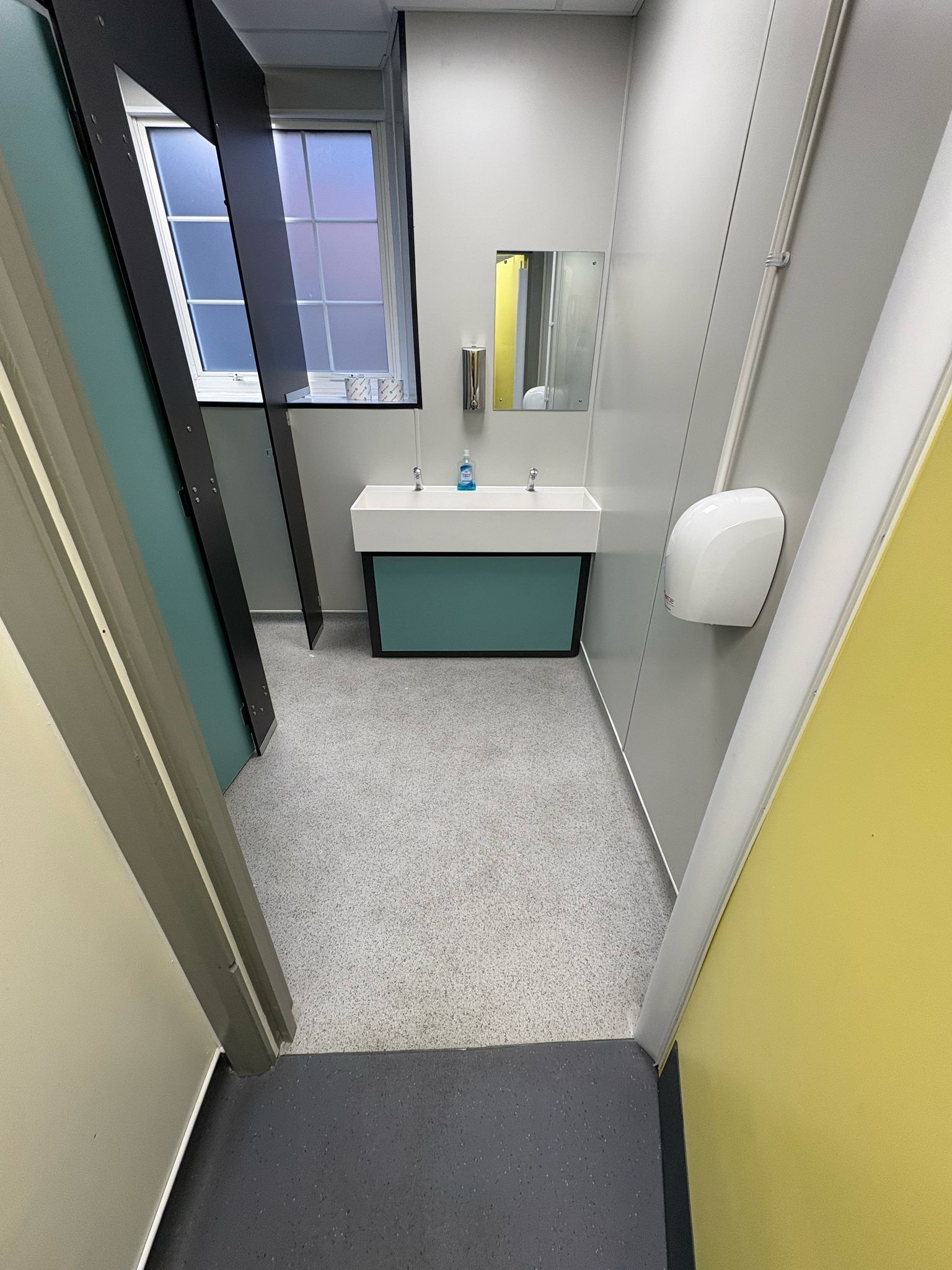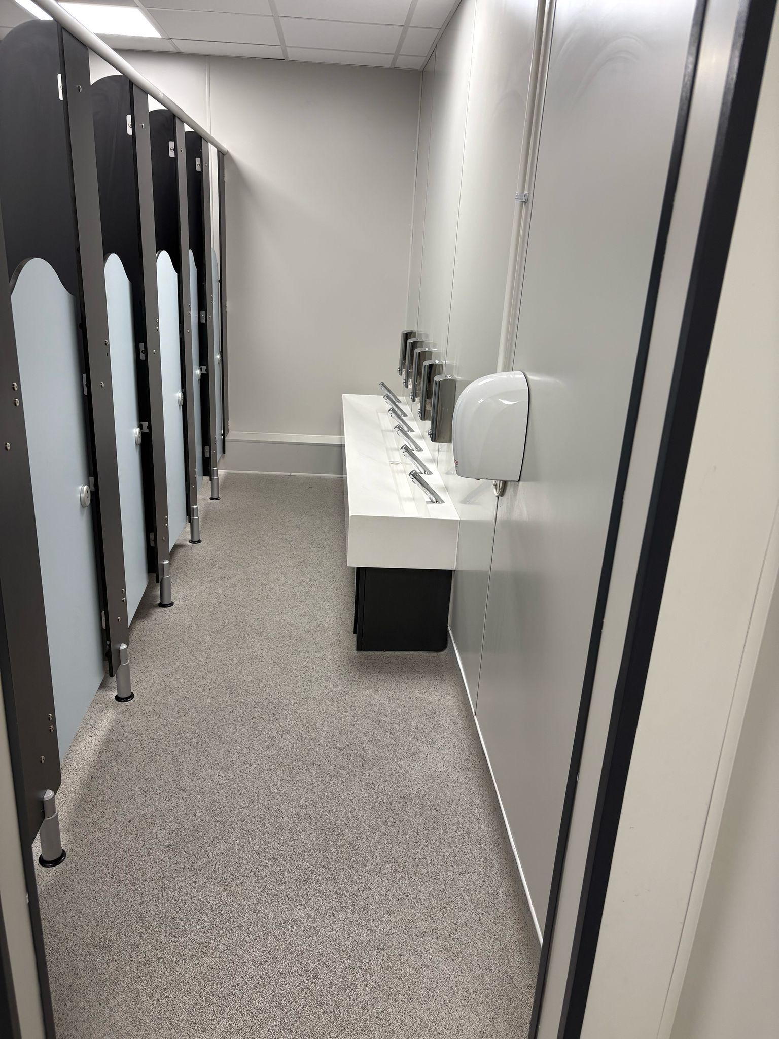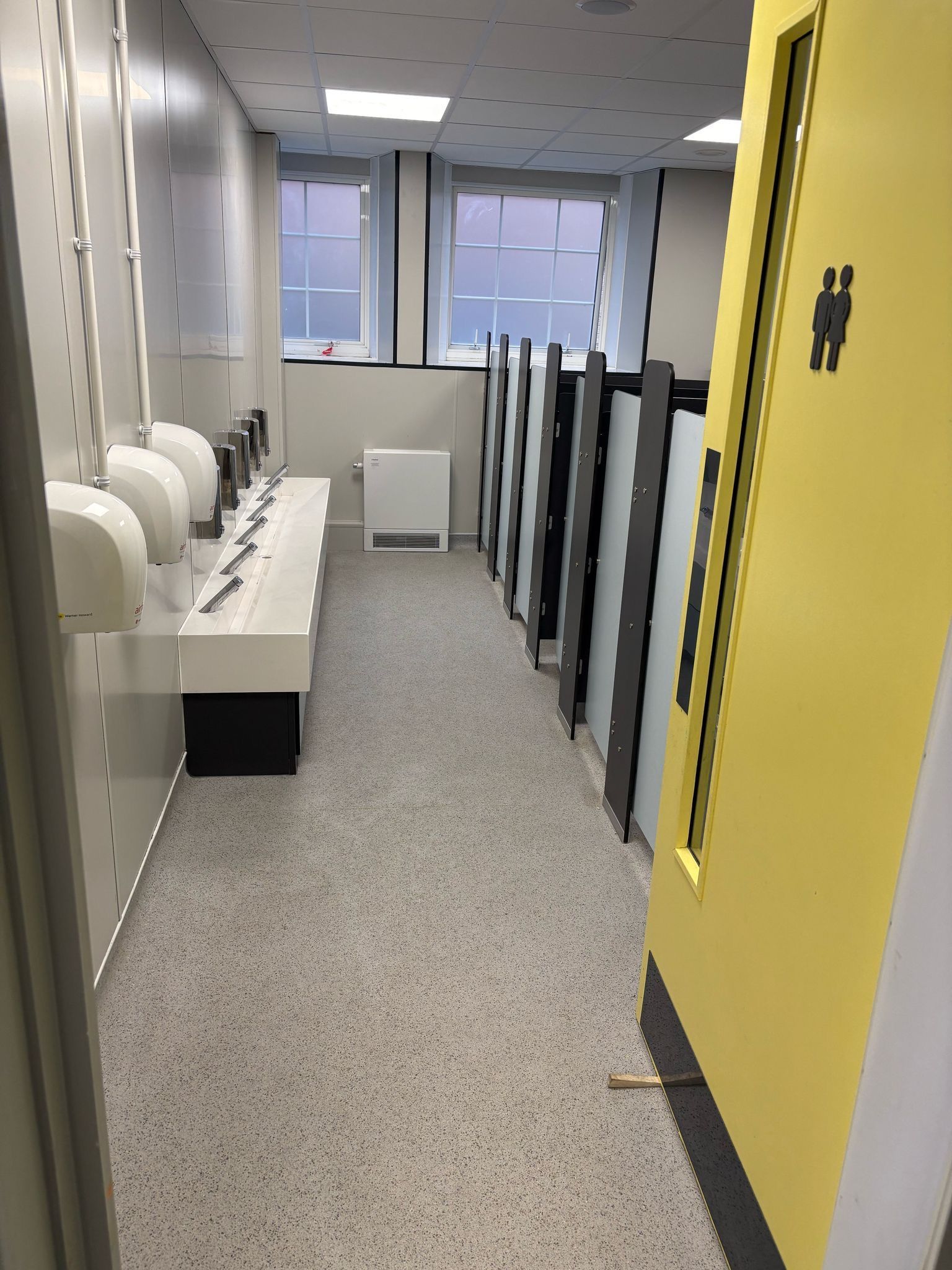 The scope of work included the full refurbishment of four student toilet blocks, the installation of two new accessible (disabled) toilet units, and the replacement of 27 low temperature radiators throughout the school. In addition, we upgraded the existing ventilation system to improve air quality and overall building performance.